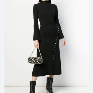 gorgeous Sandro dress without tags but never worn. adored with faux pearls in sides of both sleeves and front left with lower slit.