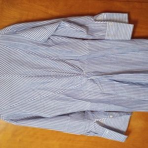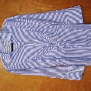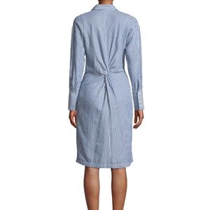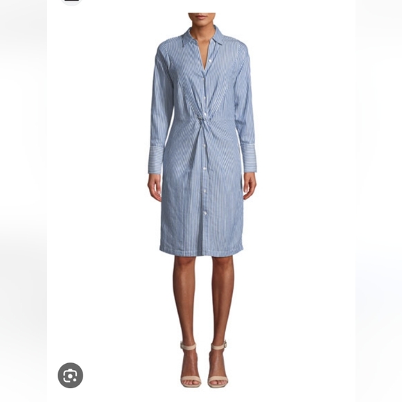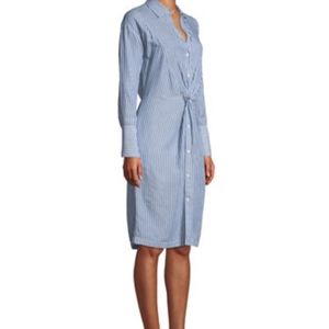 Vince blue/white striped dress with twist front and back. side zip and two front side pockets. button sleeves