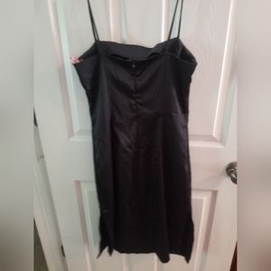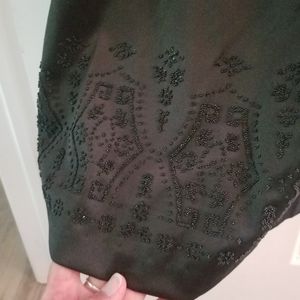 LBD, spaghetti straps, black satin with beaded pattern on bottom. size 7.