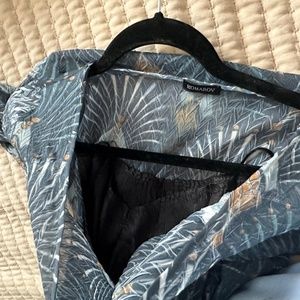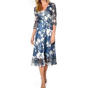 Komarov Dress- Large. Stunning dress, so flattering and elegant. Blue with gold and white details. Sheer with slip underneath. Perfect condition