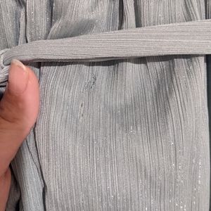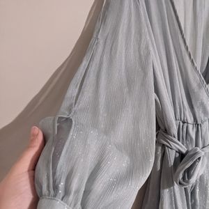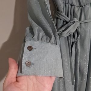 long sheer dreamy dress with lining, details open on arm, buttons and belt. it does have a snag. $or best offer.