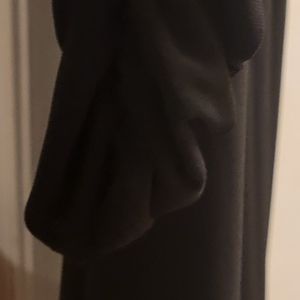 it's a size 18. This below knee length dress has an asymmetrical side. The long sleeves are ruched.