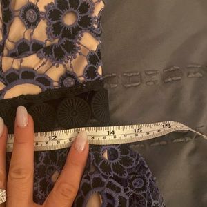 Beautiful past the knee above the ankle dress. I’m 5’1 lol. Embroidered. Worn once for a wedding . Like new