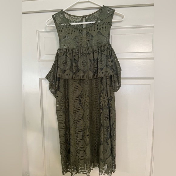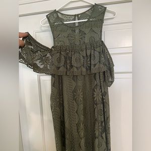 Green eyelit dress. Arm details. Super comfortable.