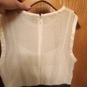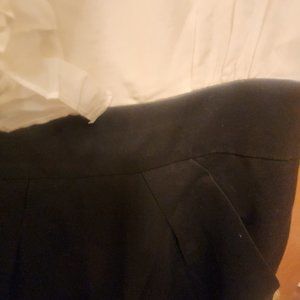 BCBGMaxazaria size 10 beautiful white and black dress....White top looks like white ruffle top....sleeveless with tacking inside black skirt....but everything it's one piece together, but looks like wite top with black skirt with to pockets, each on the sides....Beautiful dress for casual party....office work....etc....very good condition 😀