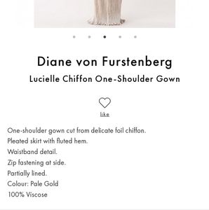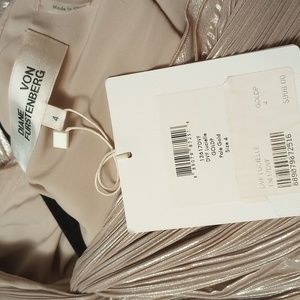 NWT DVF one shoulder dress in pale gold. it's a beauty!
