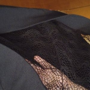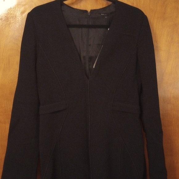 beautiful NWT deep v neck cut dress with left lace insert slit. back zip. zip sleeves. lined. 100% viscose, lining 100%silk. made in Italy by Wes Gordon