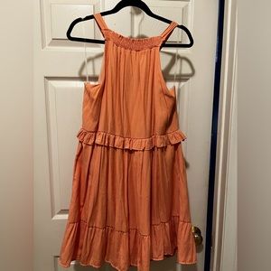 Super cute, great knee length. Too big If for me and I hate to let it go.love the halter look.