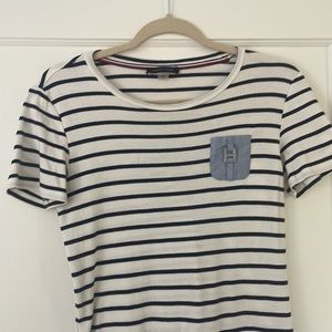 Navy and white striped dress 100% cotton