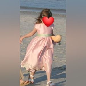 pink/lime green sash little girls dress