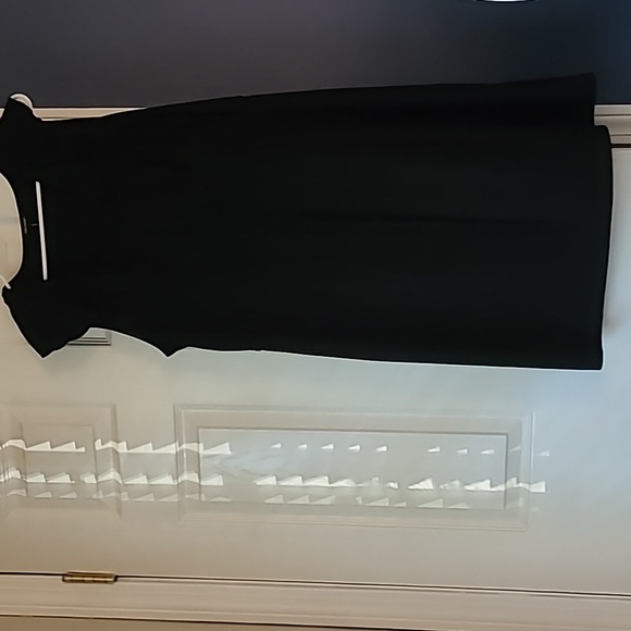 black cap sleeve dress, with flattering neckline, draw string waiat.