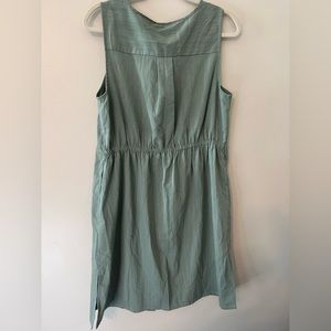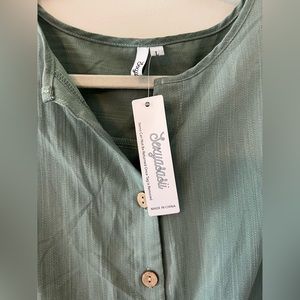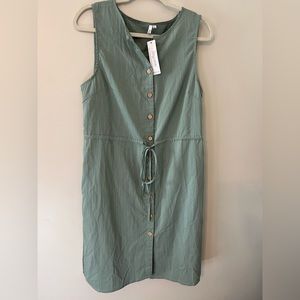 Olive green dress with buttons and adjustable belt tie. Cute for lounge wear or style with a cute sandal. Home is free if smoke/pet odor