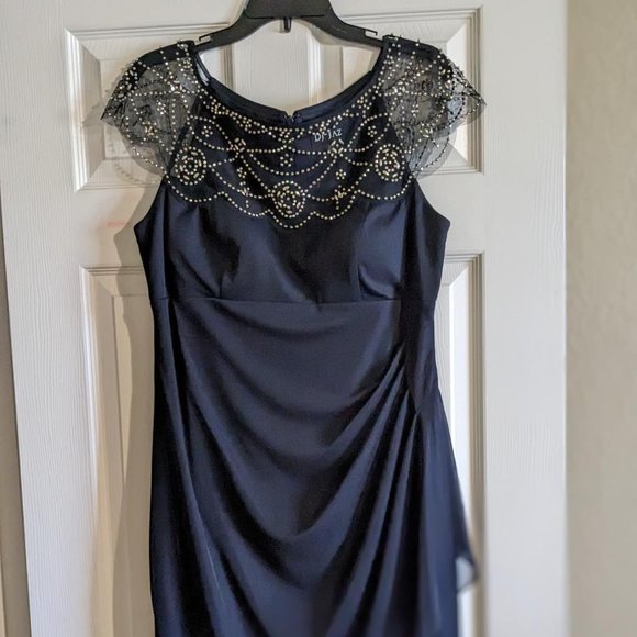 DJ-Jaz, size 16, blue with silver embellishment and flattering rouching in front and back.