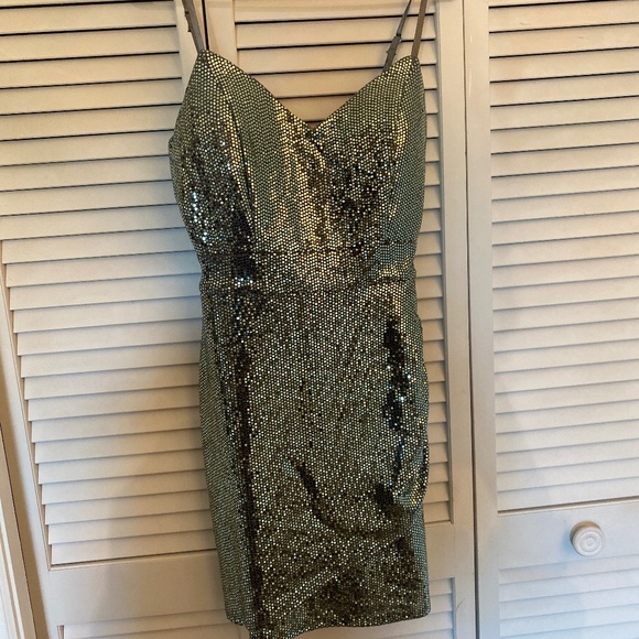 Light green, sequined, spaghetti strap, mini dress. Homecoming/hoco/ prom dress. Size small. (size 2)