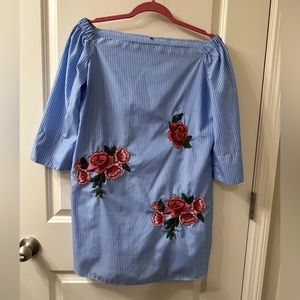Light blue dress with embroidered flower details. In very good condition. Only worn handful of times. Perfect for summer and party dress.