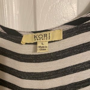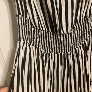 Super cute black and white dress. Cinched at the waist. I’m 5’9” and it hits right at the knees.