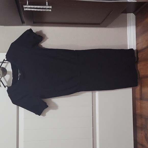 Black dress, thicker material. (93% cotton, 7% spandex)