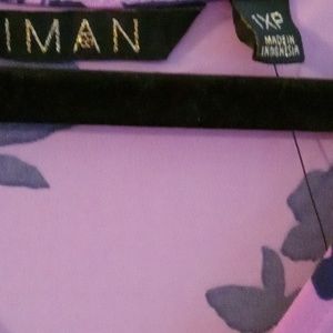 Iman dress NWT. violet backround with dark purple leaves, petals. not quite sleeveless the sleeve caps over. the front has a gather knot effect which makes the dress cascade. very slimming. it has a v neck. the length of the dress is 43 inches. the size is a 1XP
