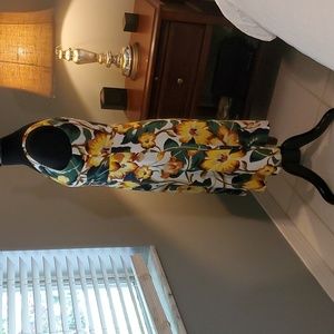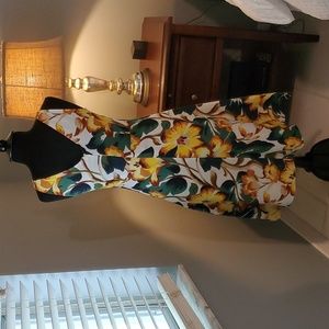 Floral dress print. Size 4, Ann Taylor Factory. 55% Linen, and 45% Viscose. Shoulder to hem is 39 inches. Empire waist, and back zipper.