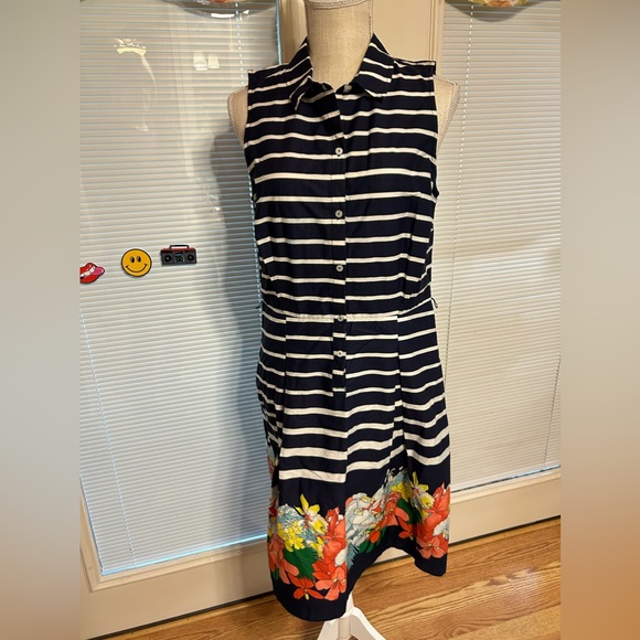Navy blue. Floral design on hem