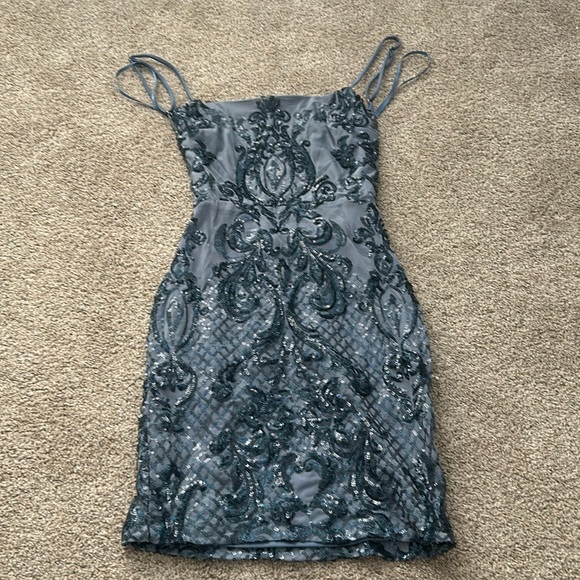 Blue dress from Windsor, never worn (still has a tag), open back, size xs