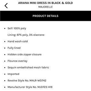Ariana Mini Dress in Black and Gold