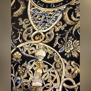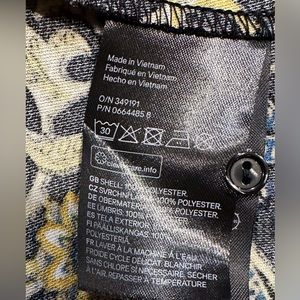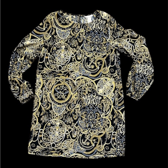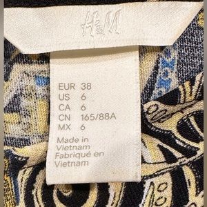 H&M. Black and gold base color with fun pattern. Length is 35" from shoulder to hem, sleeve length is 17" from pit to end. Excellent like new condition