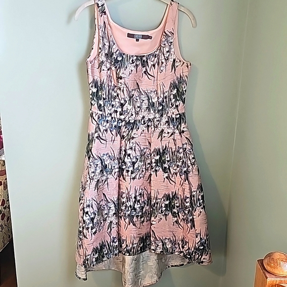 Textured 'high/low' dress with natural waist.