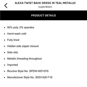 Alexa Twist Back Dress in Teal Metallic NWT Sold Out Online