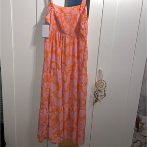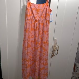 Pink and orange floral dress size Large! Adjustable straps. Perfect for spring💐