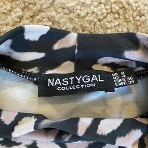 Dress with side slit. I t goes down past the knees, cute pattern. Never worn