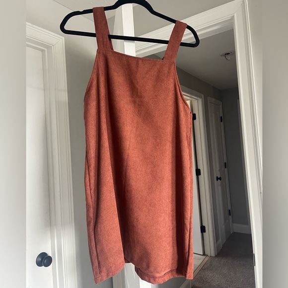 Fall or winter dress. Burnt orange. Pairs well with a long sleeve underneath with or without stockings