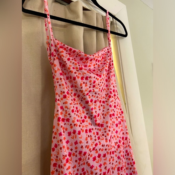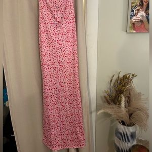 Pink long maxi, stretch material. Never worn