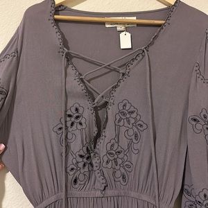 GORGEOUS lavender dress, tasteful cutouts and deep tie up v-neck.