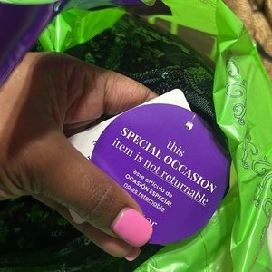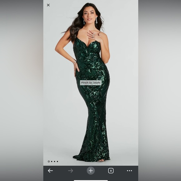 Hunter green dress , worn once to a Mardi Gras ball , no longer need the dress . Here to sale it to get my money back what I paid for it . It’s still brand new with tags .