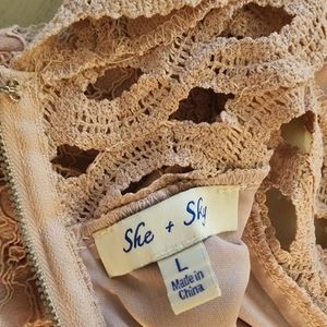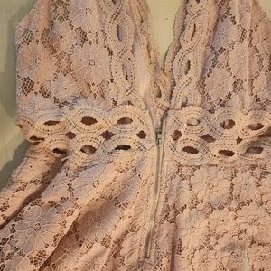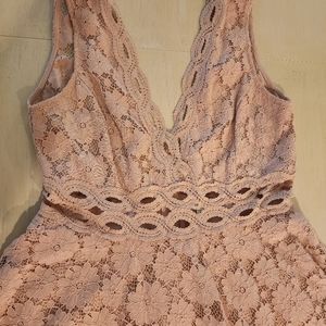Very cute, lightly worn knee length blush pink mesh flare dress. Amazing material. Has waist cutouts for a sexy extra touch.
