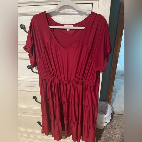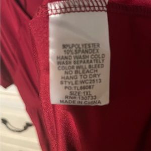 Beautiful red midi dress. It is a little heavy very good quality from a boutique. It is one of my favorite dresses. I lost weight so it no longer fits. The size is 1X.