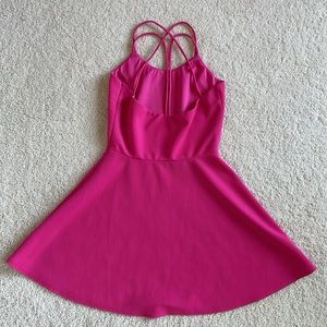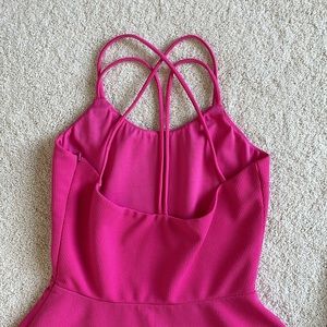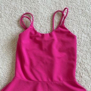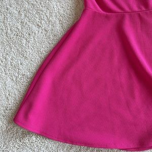 A flowy pink dress perfect for an event or a casual sunny day! Soft ribbed material, has a zipper on the side for flexibility.