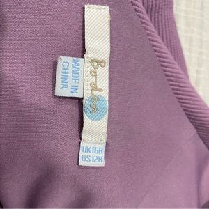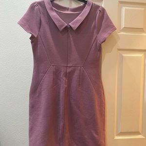 Mauve color dress round collar at the front and v shape at the back, short sleeve. Size 12R. Zippered at the back