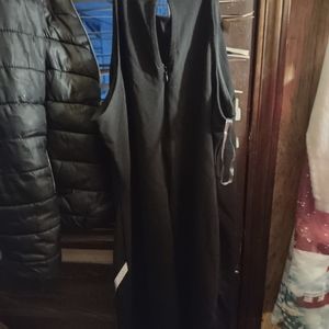 out on the town planet Gold dress. coat sold separately half jacket made of fuzzy faux fur. The dress was only worn once just to try on I didn't like the way it fit after gaining weight. The dress has sequence at the bottom of dress wraps around one thigh, which goes up a little higher than the other thigh.