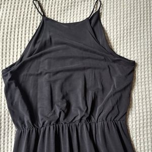 this is a dark steal blue full length dress. It hits at the ankles. Its such a sun dress for the beach or dinner dates.