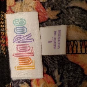 lulaRoe Dress. Black background with bright orange and yellow roses. It has a small pocket on the front chest area. Very comfortable.