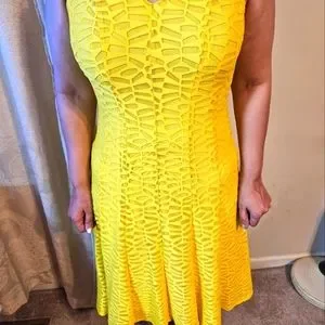 Calvin Klein Dress. Bright Yellow color, fully lined, sleeves, zip back with flare bottom.READY FOR THE SUMMER.