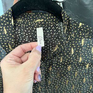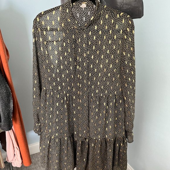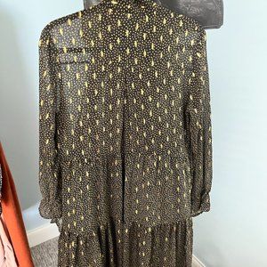 Elan Dress that is blue and gold metallic. Only worn a few times, looks new. Has a slip and hits right at the knee.