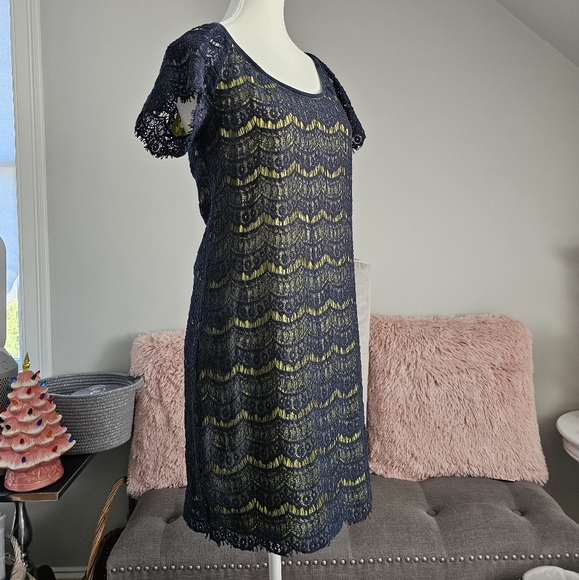 Lace overlay sheath dress with lace cap sleeves