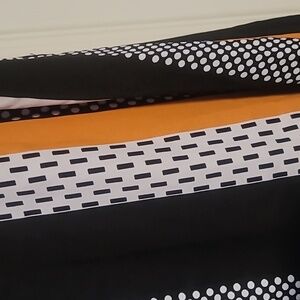 Simple black dress half with a pattern on it. also has a belt for the waist