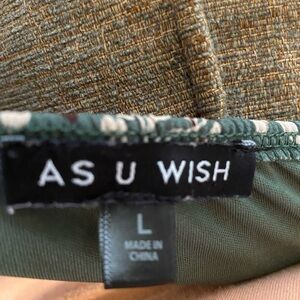 As U Wish mini dress size Large Green with floral designs . Dress is lined