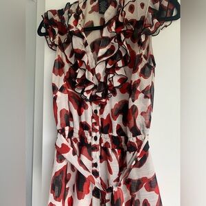 Mini dress/long top, sheer, buttoned, ruffles and tie waist