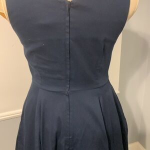 Size Large dark Navy blue dress, for evening cocktail dress, 17” zipper in the back, 20” pit to pit, waist 31”, lower part skirt 25”