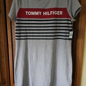 short sleeve gray dress. length from top to bottom is 36 in and across the back under arm is 20 in. 95% cotton 5% elastane.